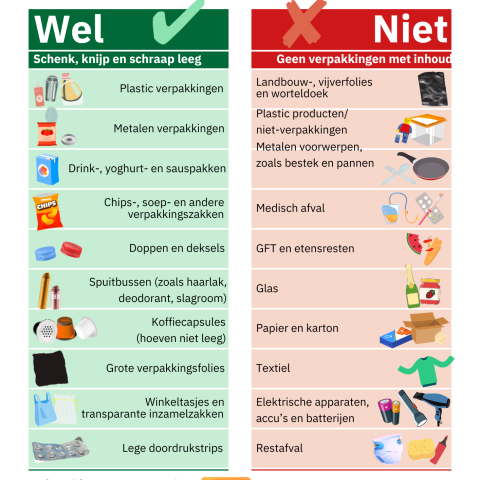 Als u twijfelt in welke bak uw afval hoort, checkt u de afvalscheidingswijzer van Milieu Centraal.
